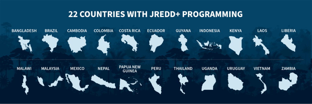 As one of the few mechanisms that directly ties verified emissions reductions to finance, Jurisdictional Reducing Emissions from Deforestation and Forest Degradation (JREDD+) is a crucial pathway for forest-rich countries to unlock climate funding at scale. Winrock is a global leader in helping to shape and implement JREDD+ programs under a range of REDD+ compliance frameworks. With a reputation for pairing scientific rigor with practical application, Winrock has been a key technical partner in developing the REDD+ programs of 22 countries in Africa, Asia and Latin America, providing technical assistance across the three phases of REDD: readiness, implementation, and finance mobilization. Specific support includes development of national forest monitoring and information systems; forest reference levels; REDD+ strategy documents; and documentation and support to secure access to climate financing and issuance of carbon credits. Winrock’s technical assistance advances transparent and accurate emissions accounting, ensuring verified results and trusted carbon credits while strengthening jurisdictions’ long-term capacity to meet international climate commitments, such as Nationally Determined Contributions.